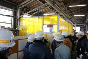 岩手県溶接協会の副会長で、協会創立60周年記念事業担当を務める当社社長佐々木史昭より、歓迎のあいさつがあり、取締役製造部長青木彰人が工場説明及び案内役を務め、設計、原寸、工場内を順に、溶接された部材や製品を興味深く御覧になりながら時折質問もされていました。