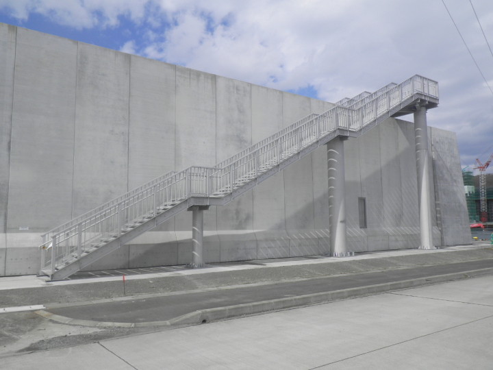 本工事では、津波からの緊急時に安全な場所へ素早い避難ができるように、3基のステンレス製階段を製作・据付しました。3月に竣工を迎え、令和2年4月から供用が開始されます。 当社は津波対策水門、陸閘を手がけており、引き続き復興工事が無事完了するよう尽力して参ります。