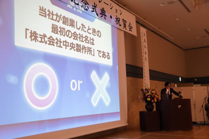 祝賀会の余興として、当社中央コーポレーションにまつわる○×問題を参加者の皆さんに挑戦していただきました。