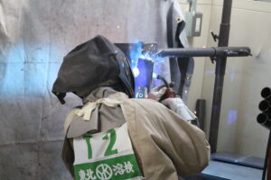 両部門とも薄板(板厚4.5ミリ、横向姿勢)と中板(板厚9ミリ、立向上進姿勢)が課題となっており、外観試験のほか、X線透過試験、曲げ試験などの項目で審査され、すべての結果が出て順位が決定し、各部門の優勝者2名が「第71回 全国溶接技術競技会 北海道地区 苫小牧大会」に岩手県代表として出場します。