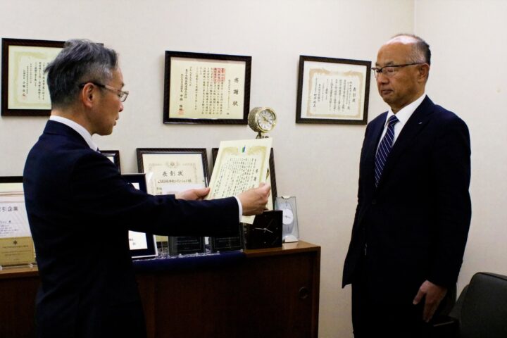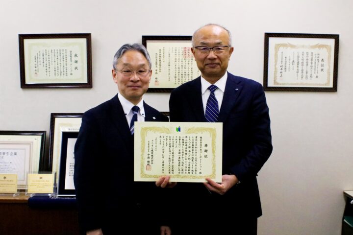 当社はこの度、令和7年12月8日に発生した青森県東方沖地震により被災した八戸線 本八戸駅・小中野駅間第二柏崎高架橋において、ユニオン建設(株)様と協力して安全かつ迅速に復旧工事を行い 早期の運転再開に尽力したことが評価され、感謝状を贈呈いただきました。
