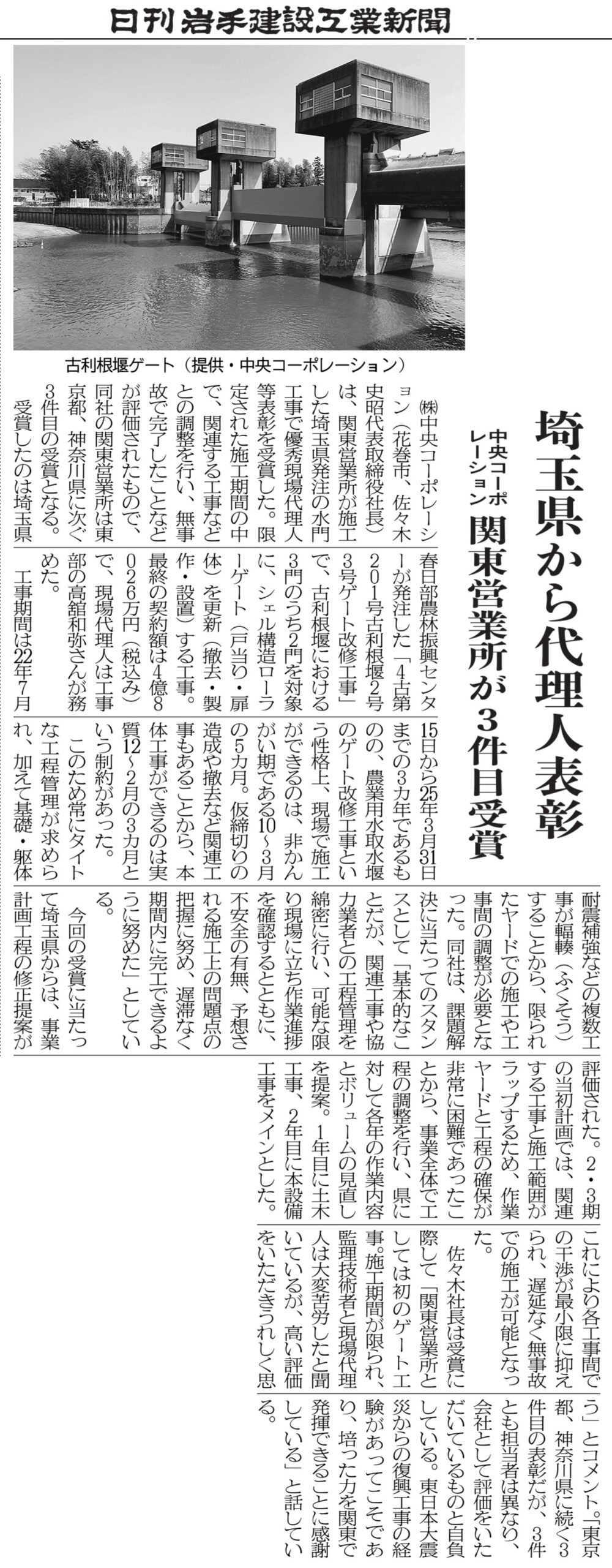 日刊岩手建設工業新聞2026年2月9日号に弊社社員が『令和7年度 埼玉県春日部農林振興センター 農林部優秀現場代理人』受賞の記事が掲載されました。